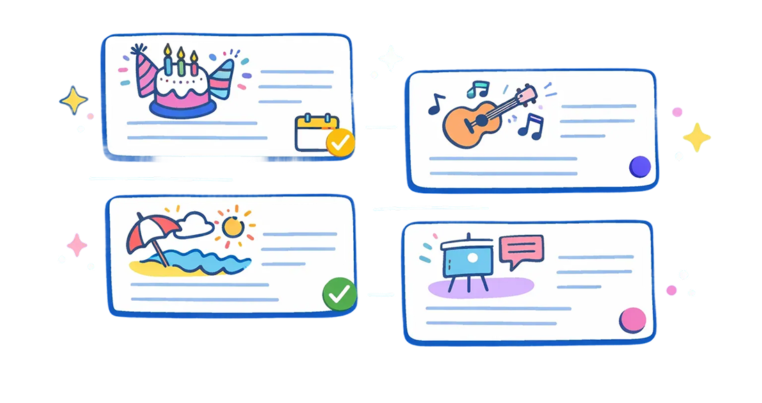 Collect guest details, send beautiful invitations, and track responses — all in one calm, organized place.